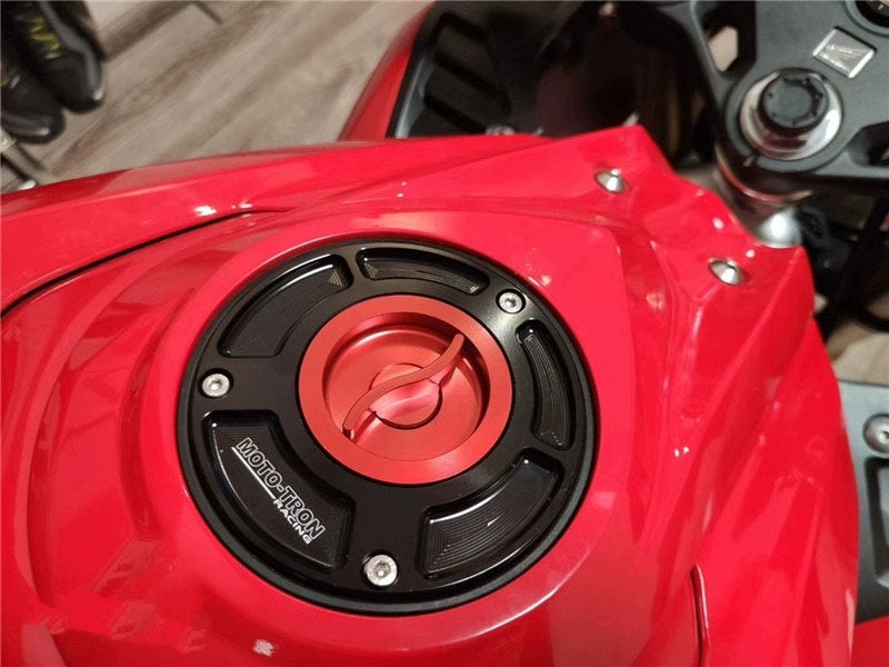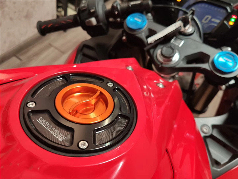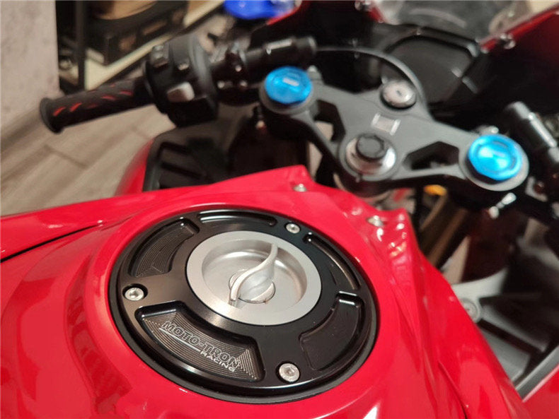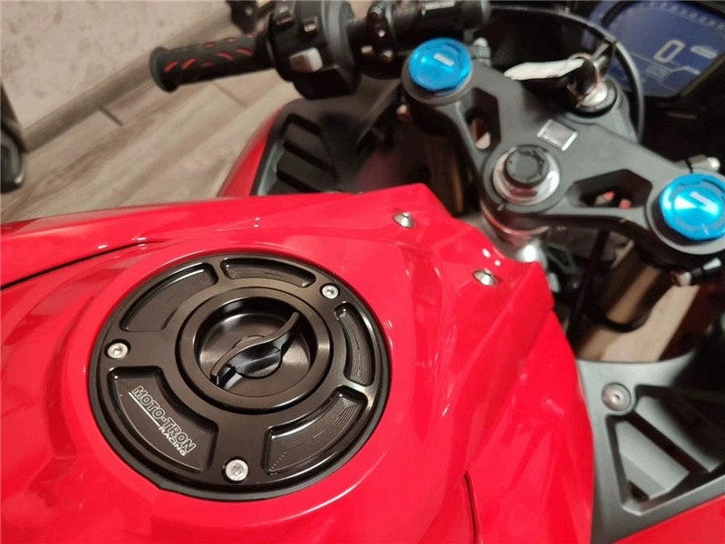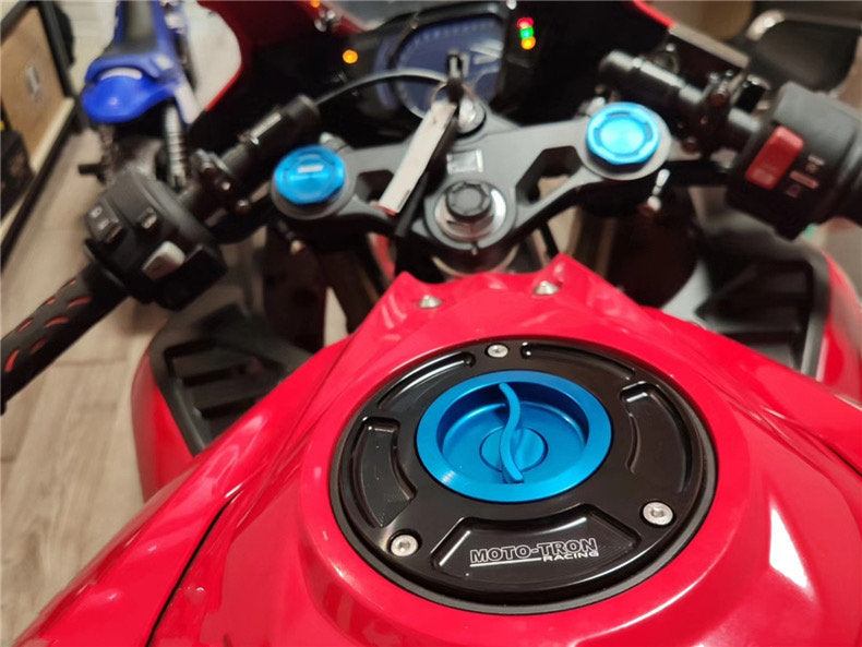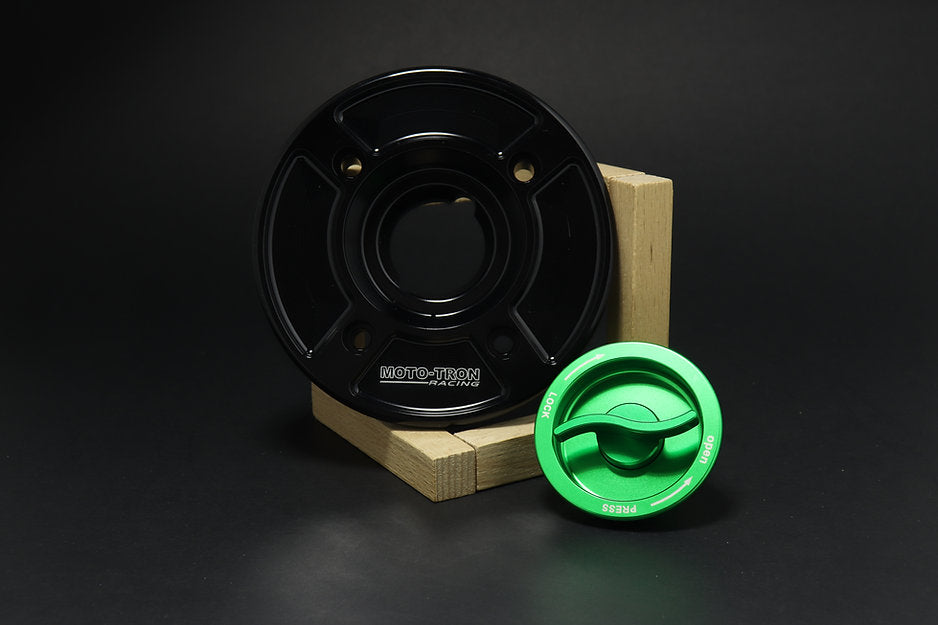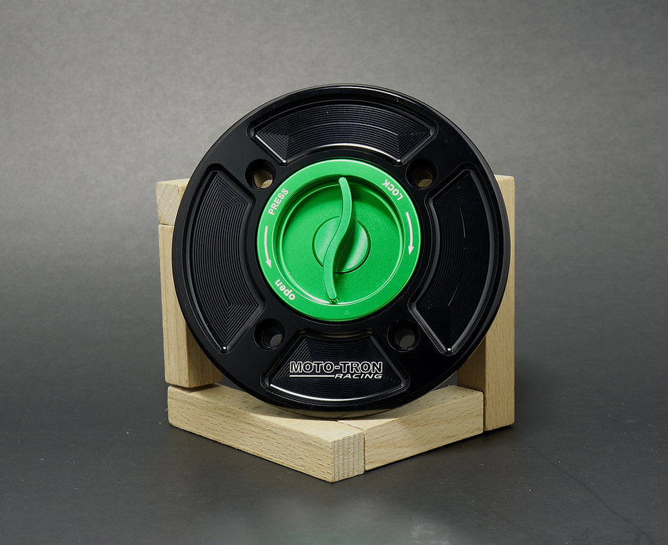 Constructed from 6061-T6 aircraft grade aluminum and given a precise CNC finish, the Moto-Tron EVO Fuel Cap is available in a variety of anodized color options.
