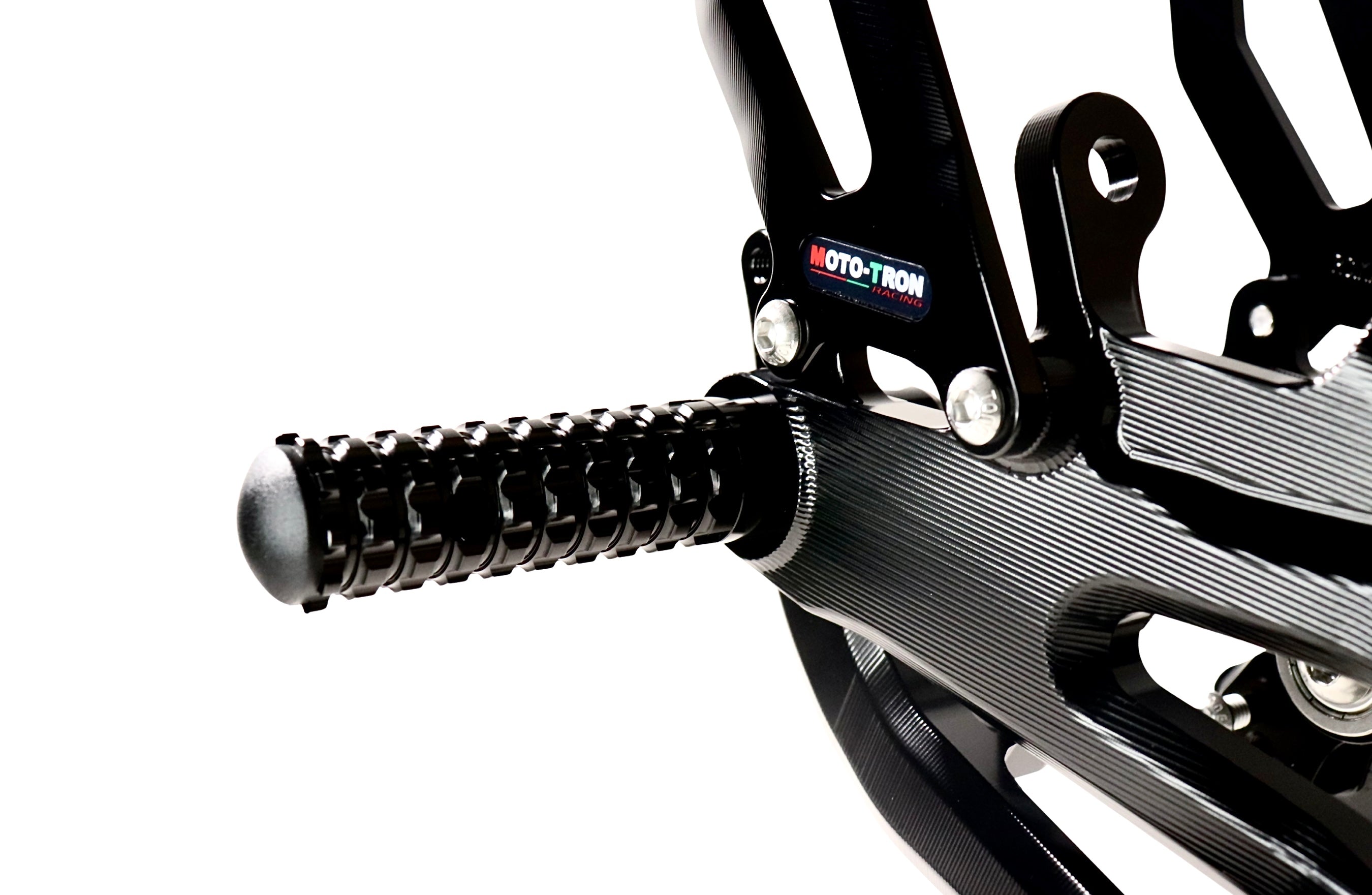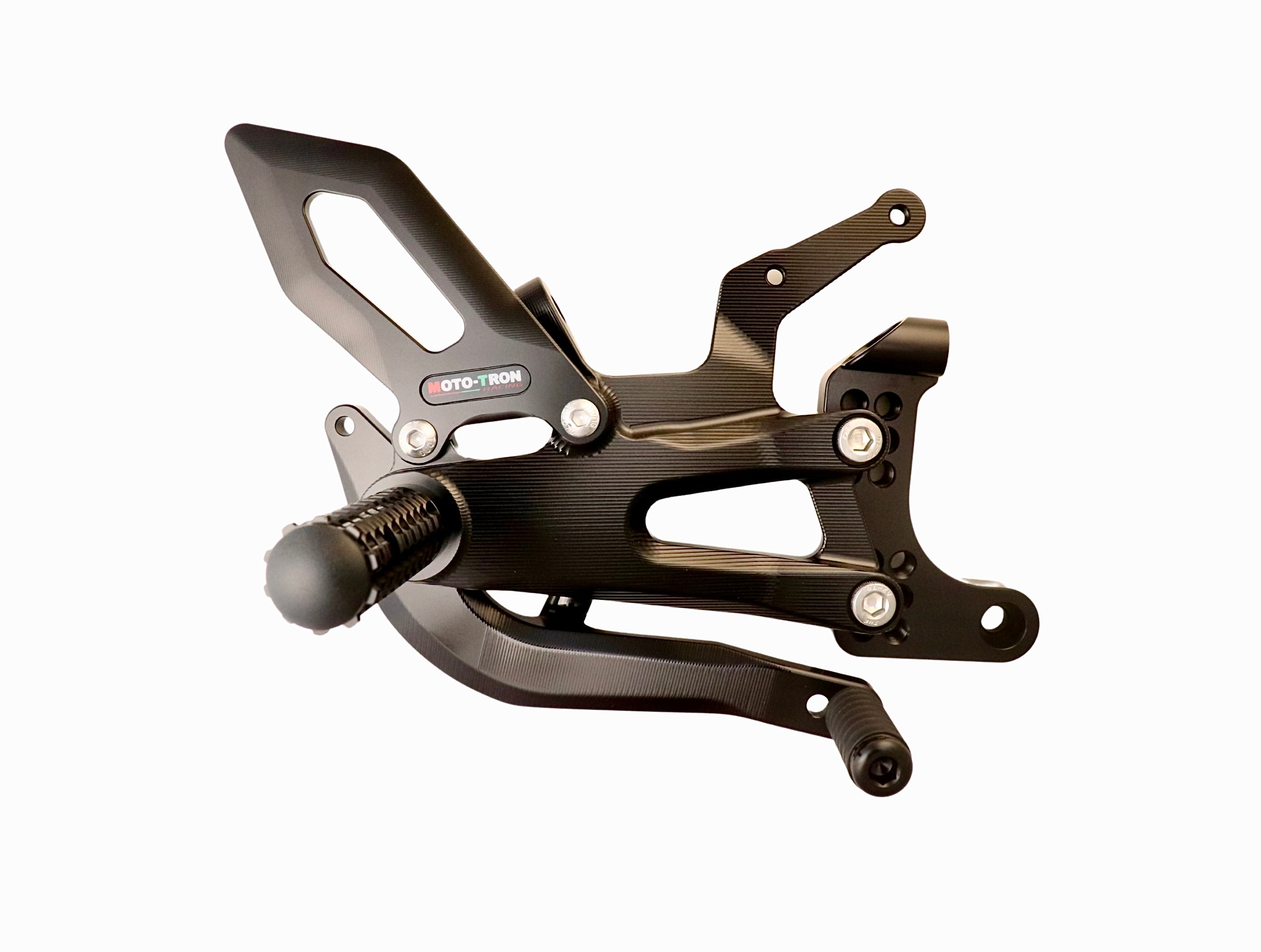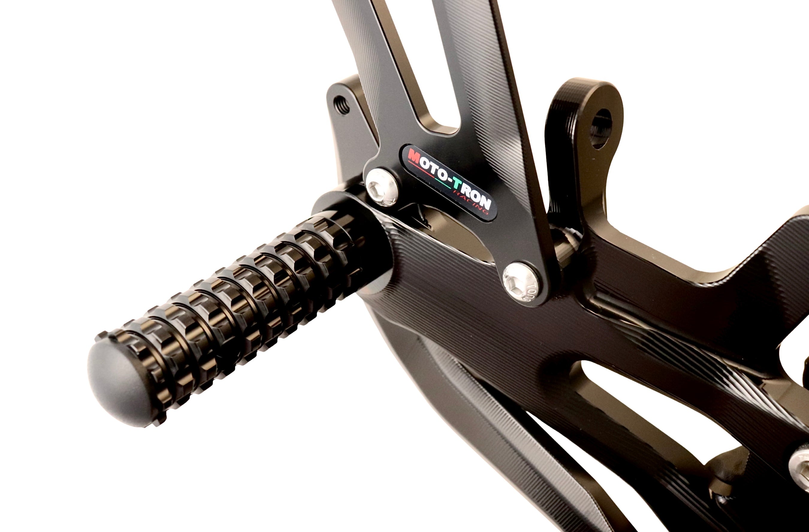 Experience unparalleled performance with the Moto-Tron REV Rear Set. Made of 6061-T651 Aircraft Grade Aluminum, this rear set boasts 100% ultra smooth CNC machining for superior quality. Its Swedish and Japanese anodized dye, combined with a 72-hour UV aging test, ensures long-lasting color and enhanced fade-resistance. Plus, its GP-shift compatibility and customizable ergonomics make it the perfect upgrade from OEM rear sets. Tested on real bikes and optimized for tracks and open roads.
