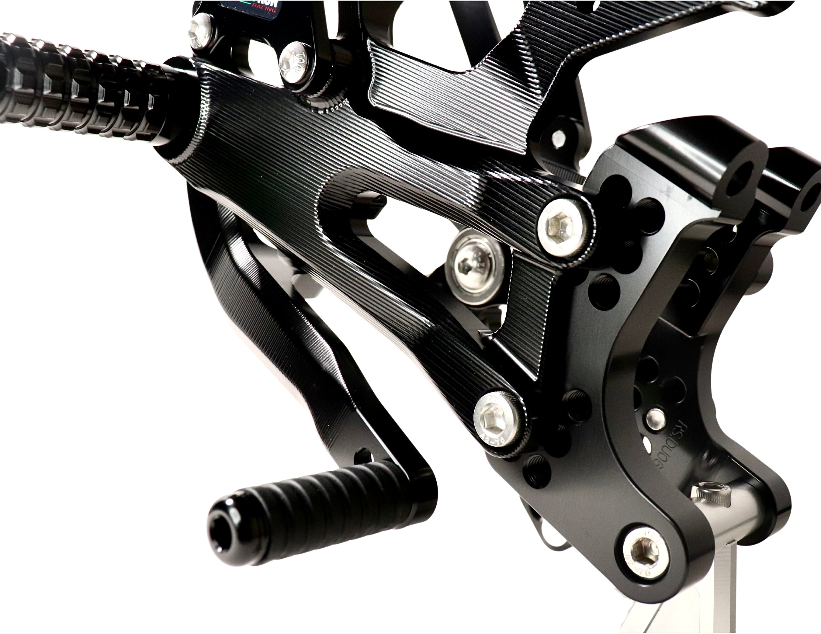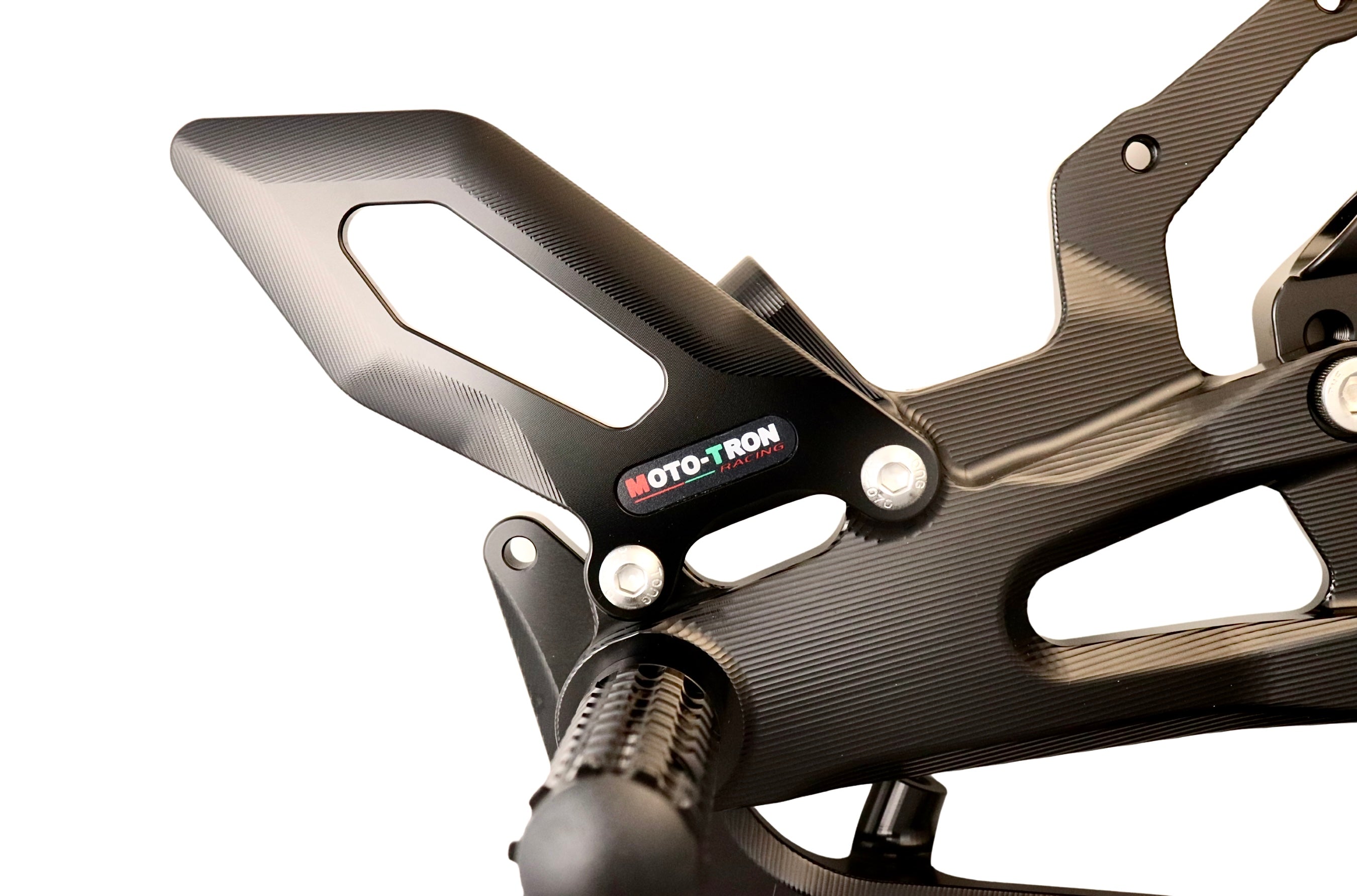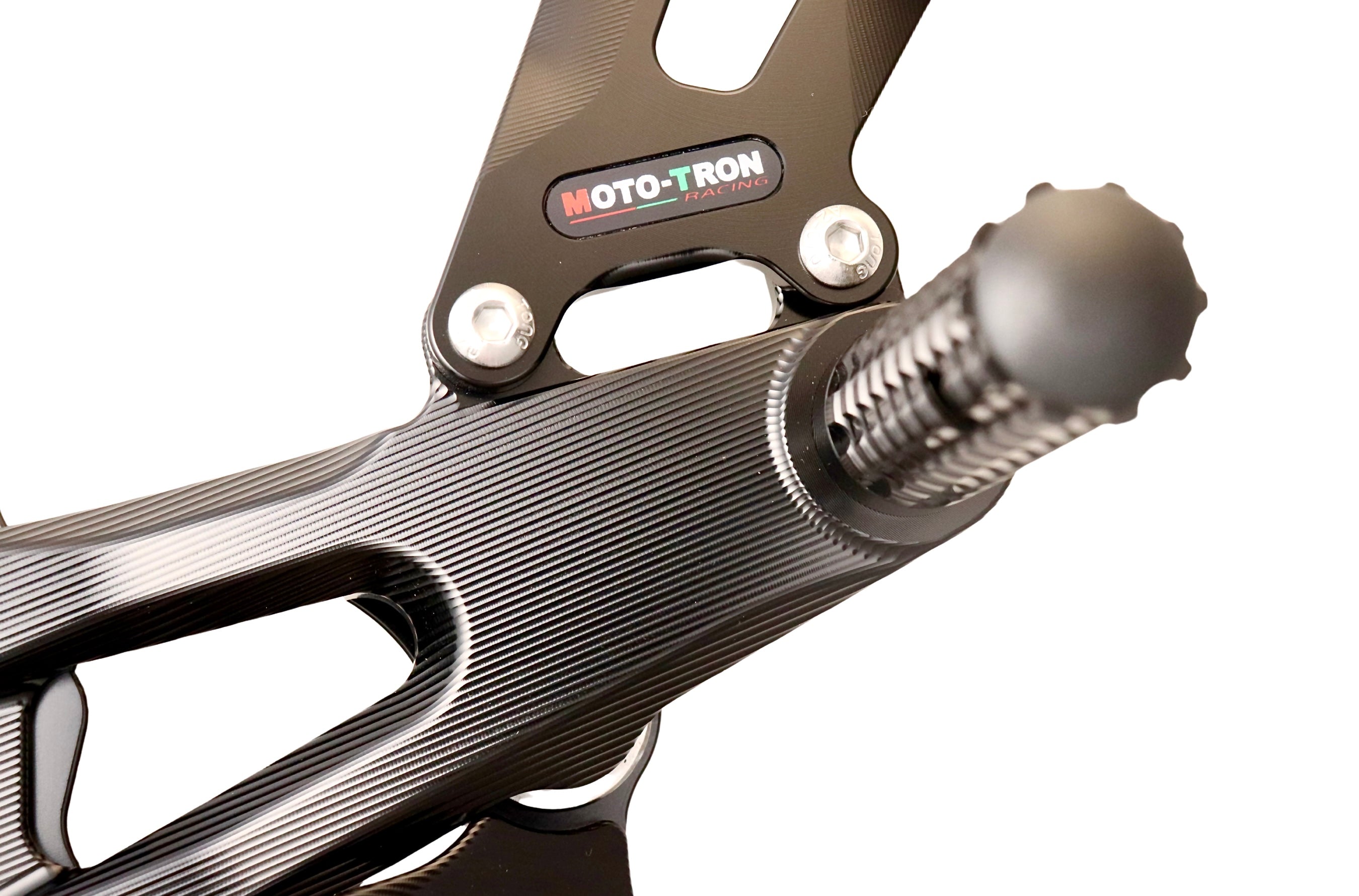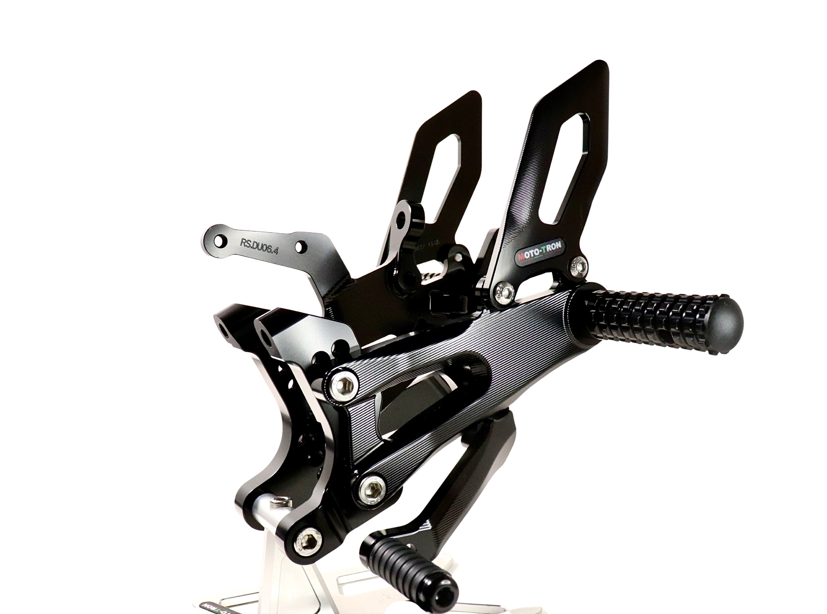 Experience unparalleled performance with the Moto-Tron REV Rear Set. Made of 6061-T651 Aircraft Grade Aluminum, this rear set boasts 100% ultra smooth CNC machining for superior quality. Its Swedish and Japanese anodized dye, combined with a 72-hour UV aging test, ensures long-lasting color and enhanced fade-resistance. Plus, its GP-shift compatibility and customizable ergonomics make it the perfect upgrade from OEM rear sets. Tested on real bikes and optimized for tracks and open roads.