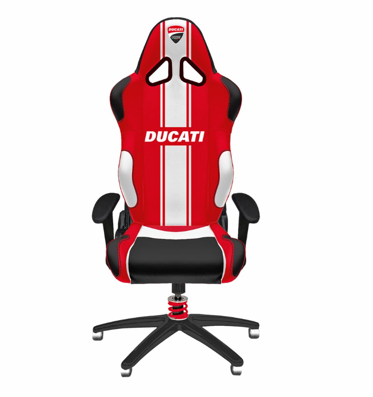 Brighten up your work days with the office chair by Ducati Corse. Superior quality manufacturing and maximum comfort, thanks to the stable integrated steel frame and the high-density, non-deformable foam padding. Find the perfect position for you, with the backrest adjustable to an angle of up to 180° and lockable without any abrupt jerking, integrated headrest, Softpad systems to set the height of the armrests and Toplift for continuous seat adjustment. The safety wheels complete the excellent range of technical equipment of this chair, in which the distinct racing colors and graphics make it the star of the show, creating the perfect accessory to release all your Ducati fervor and passion even when at the office.