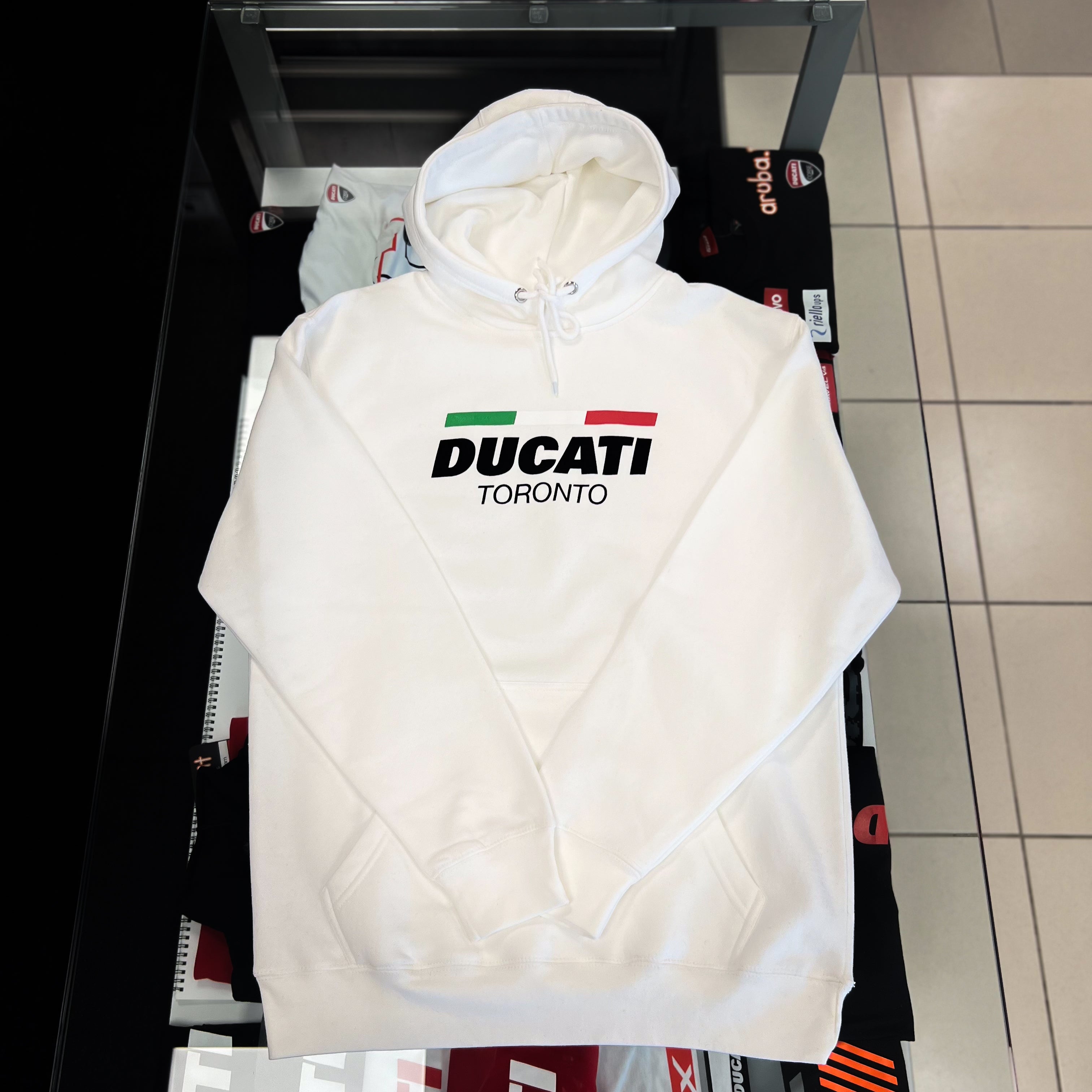Stay warm and show your support for your local Ducati dealership with a Ducati Toronto Hoodie. Made by the well-established brand in 2023, this exclusive hoodie features the iconic Ducati logo and is perfect for any Ducatisti. Keep cozy and showcase your passion for Ducati with this stylish addition to your wardrobe.