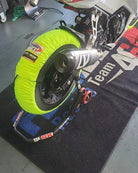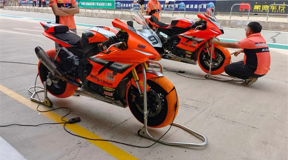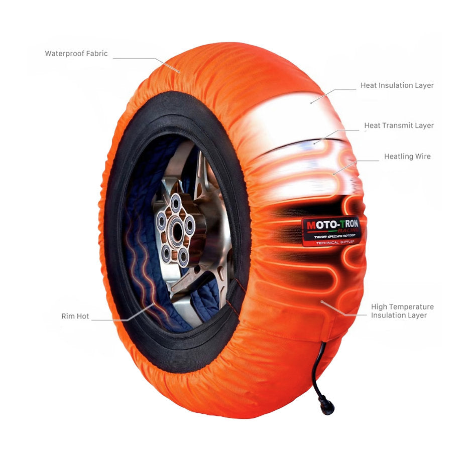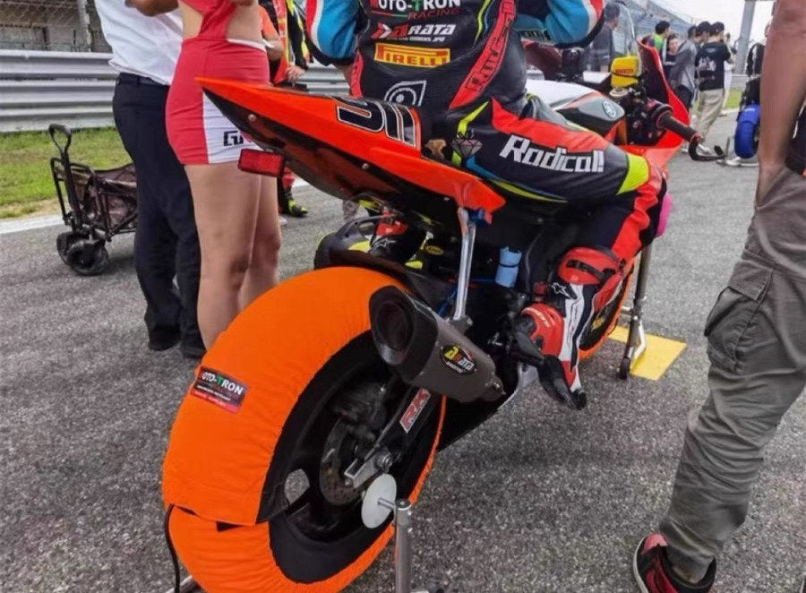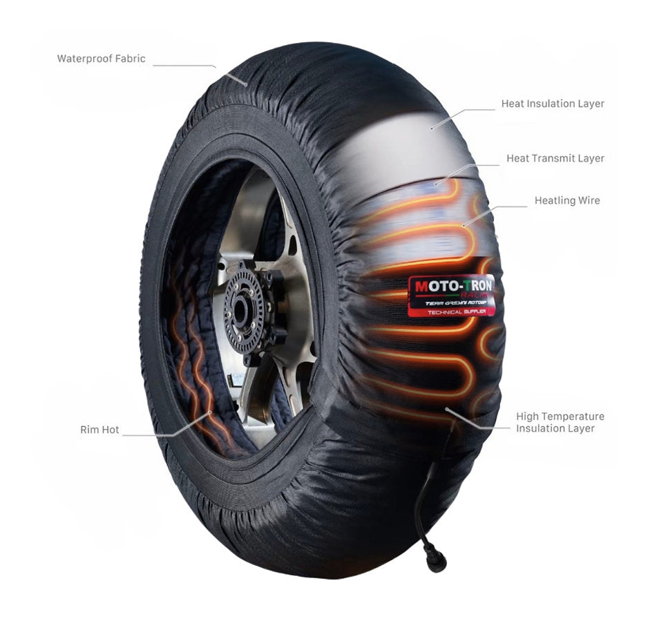 This tire warmer is constructed with fireproof fibers and boasts automatic digital temperature control. With precision of 1 degree, it minimizes temperature fluctuations. The high-performance silicone heating wire and full coverage rim hugger make it a top choice among over 95% of Chinese racing teams. Comes in a pair with a control panel.
