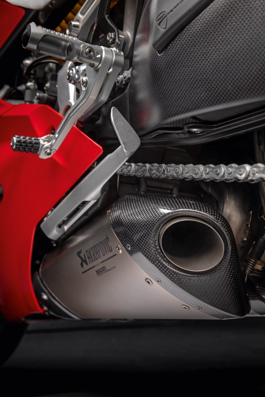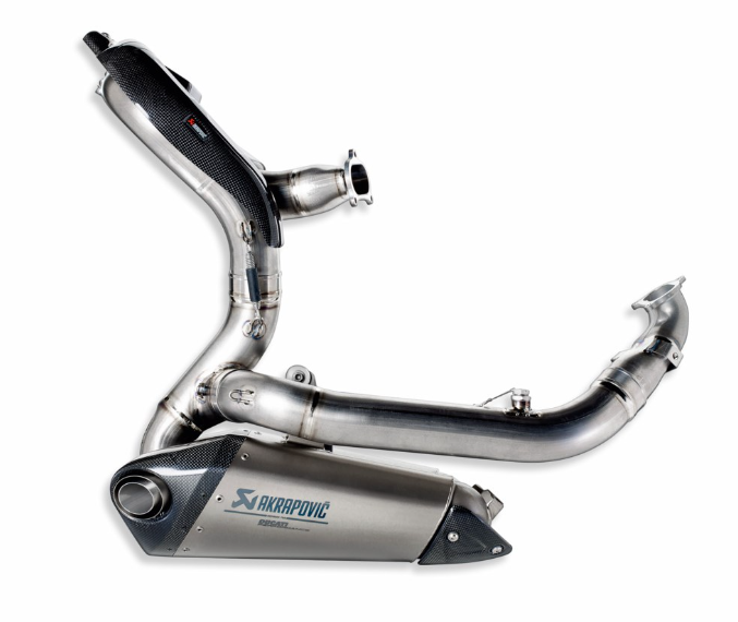 A new, very high-performance exhaust system has been created thanks to Akrapovič’s skilful workmanship combined with Ducati design, exclusively for Panigale. It is completely manufactured in special titanium alloy and TIG (Tungsten Inert Gas) type welding, to offer the highest lightness and resistance to high temperatures. It is equipped with a dedicated engine map to meet specific racing requirements and ensure maximum performance. The already excellent weight/power ratio of the supersport bike has been further improved by this exclusive accessory, for breathtaking acceleration and sprint.