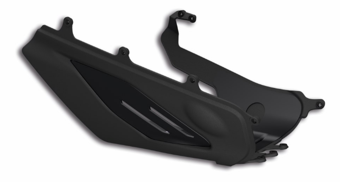 Made of high-quality plastic material to offer excellent resistance. To be mounted in combination with the complete exhaust system or Akrapovič silencers to complete the bike's racing look.
