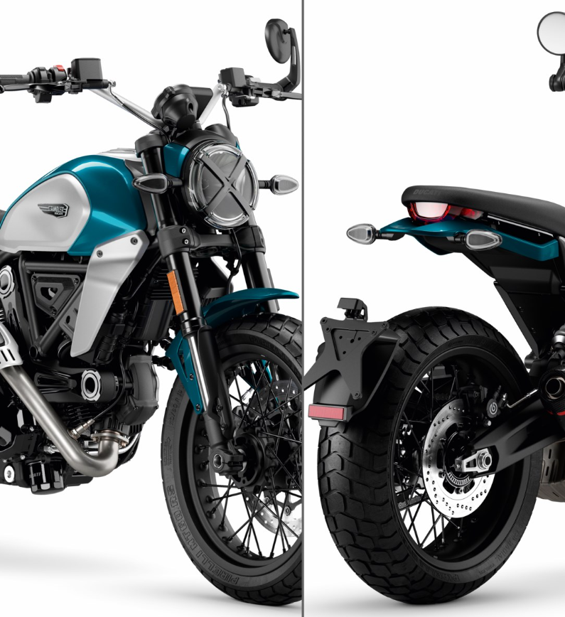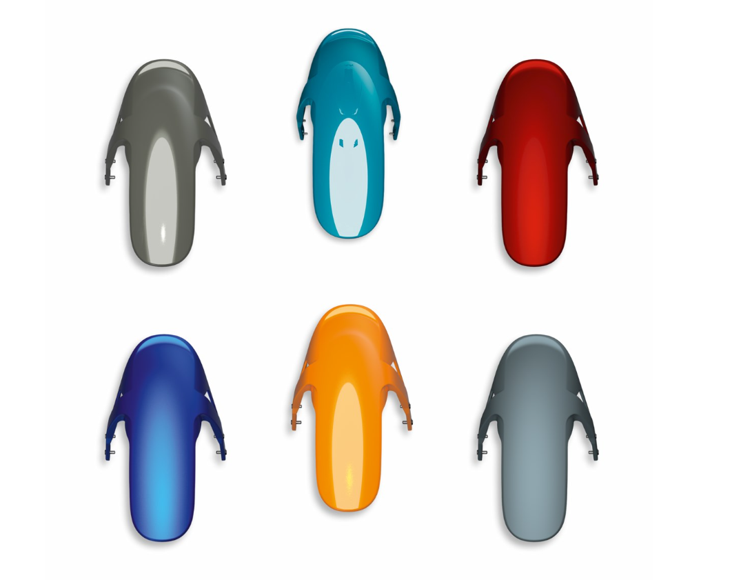 Set of parts designed to enhance the aesthetics of the bike with a personal touch. Custom-coloured tank covers, headlight covers, coloured adhesive strips for rims, front and rear mudguards and coloured exhaust ring will make the iconic Scrambler style even more distinctive.