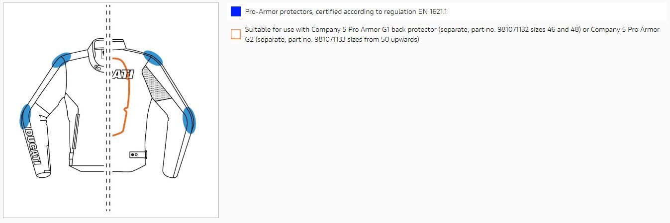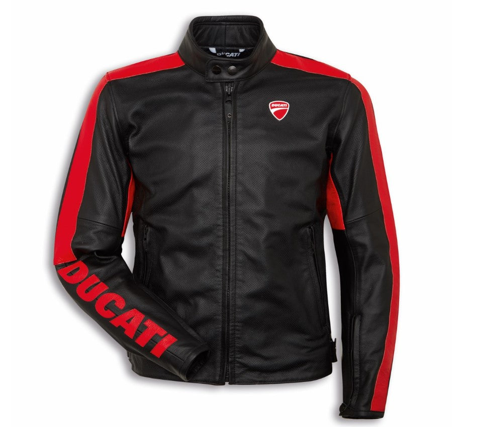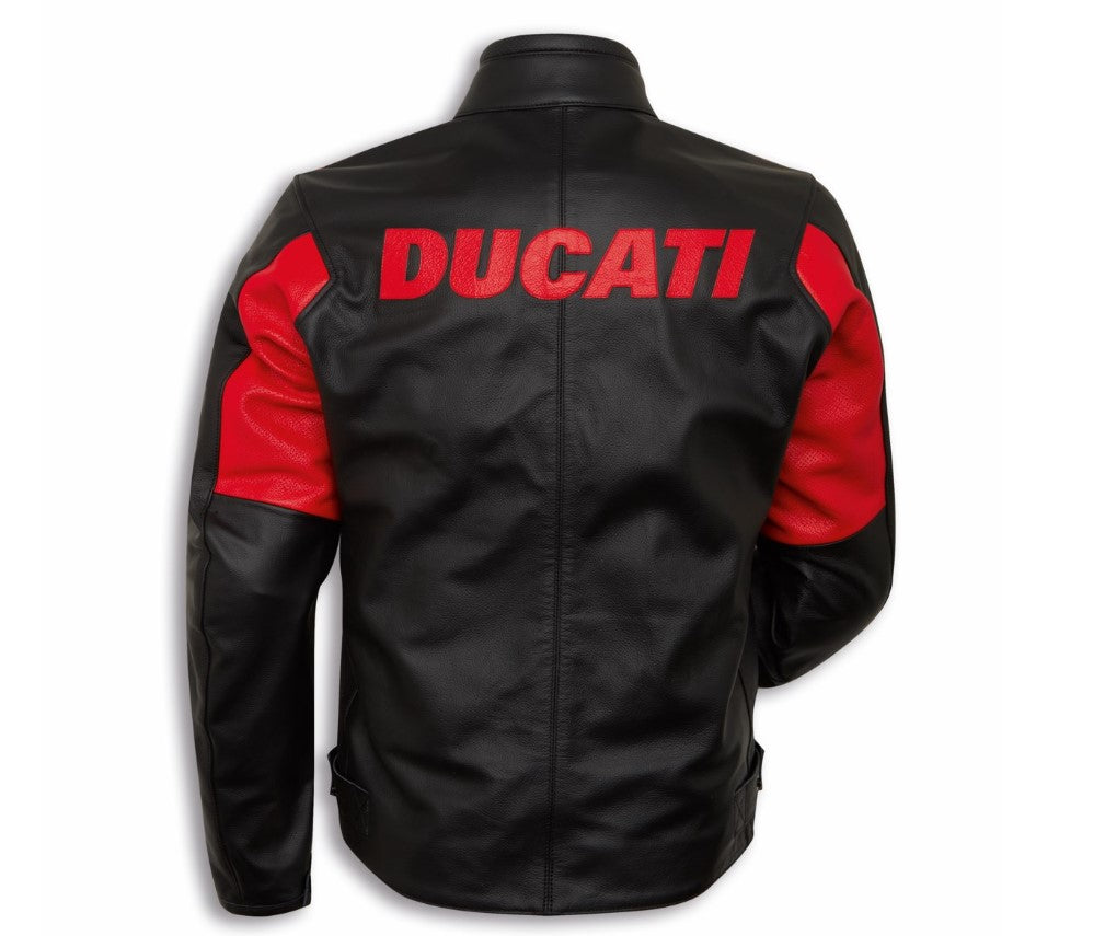 Company C4 jacket produced by Dainese exclusively for Ducati, is an urban garment made of soft cowhide. Available in men's (perforated and non-perforated) and women's versions, it is fully CE-certified according to the latest European standards. Ready for use with a back protector, it is equipped with comfortable Pro Armor protectors on the shoulders and elbows. The Ducati brand stands out thanks to the patch on the chest and the laser-cut lettering stitched on the back and on the right arm, featuring a distinct red color. The best choice for those entering the world of the Borgo Panigale Reds.